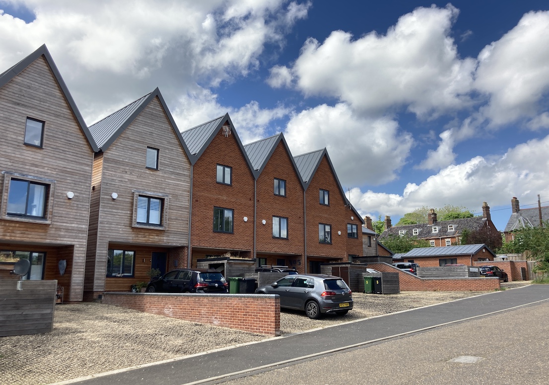 A terrace of houses designed for a dis-used plot of land in Fakenham, Norfolk.
